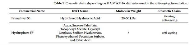 The combination of HA with various active ingredients in this new anti-aging cream improved skin texture after 28 days of cosmetic treatment. As a result, clinical evaluation of an anti-aging cream containing LMW-HA, encapsulated NaHA, ectoine, 22 kJ microcapsules and a plant extract showed an overall improvement in the condition of the skin around the eyes, a significant reduction in the length and depth of wrinkles. This experimental formulation was highly evaluated by the test subjects in terms of efficacy and product characteristics and was very well tolerated. This complex cream could further contribute to the ongoing treatment of mature skin.