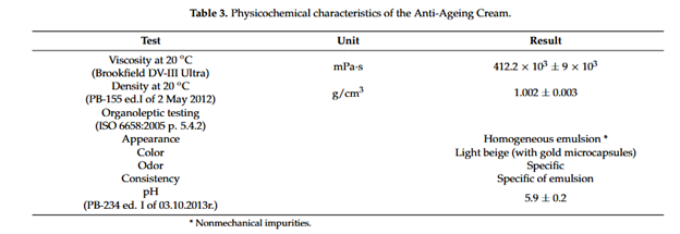 Stability testing, physicochemical properties and microbiological control, including testing the effectiveness of the preservative used (challenge test) were performed for the cosmetic formulation.